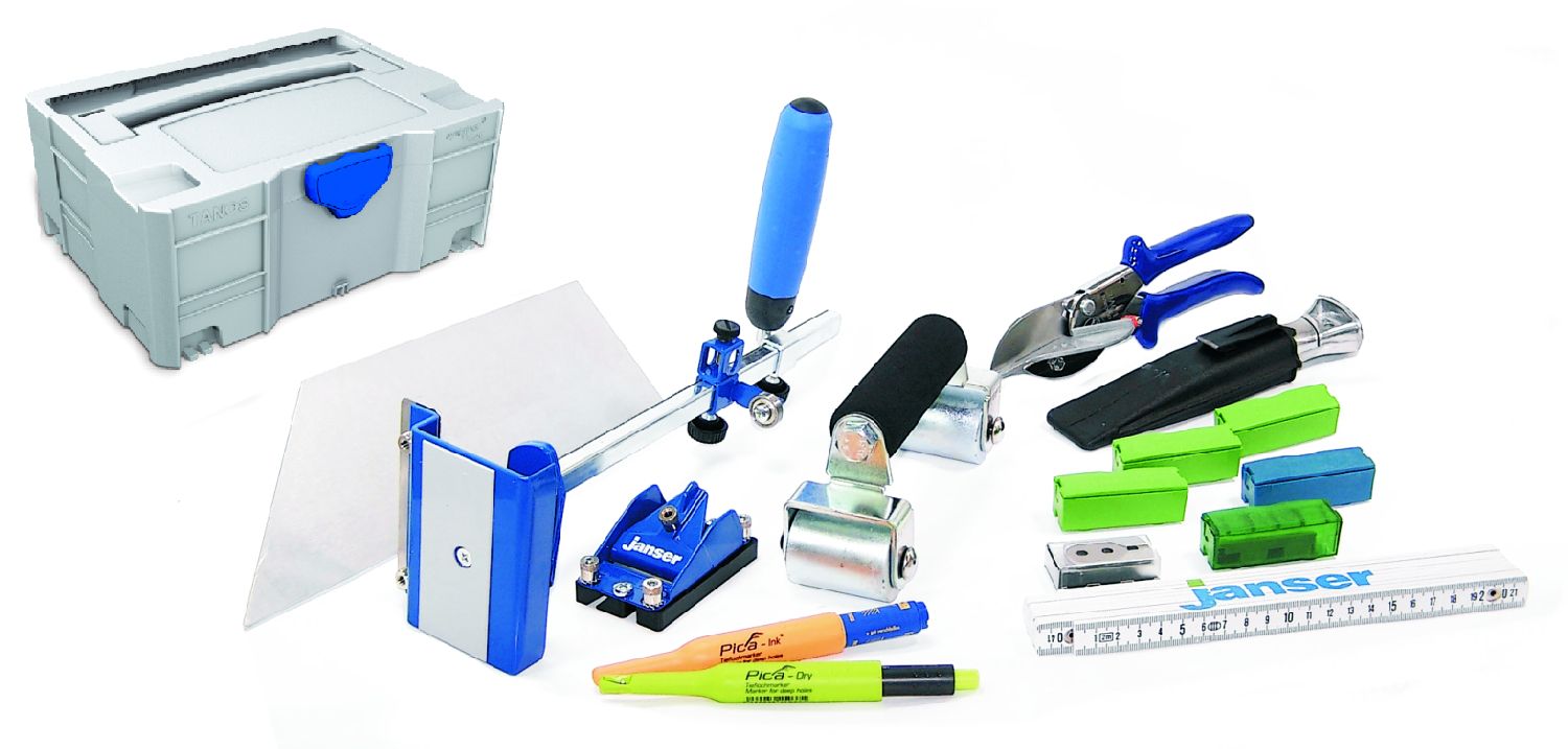 Svi potrebni radni koraci koji su potrebni prilikom postavljanja LVT poda pokriveni su uključenim alatima i pomagalima za polaganje. King of strips – za savršeno i brzo rezanje zidnih spojeva i letvica za lajsne.